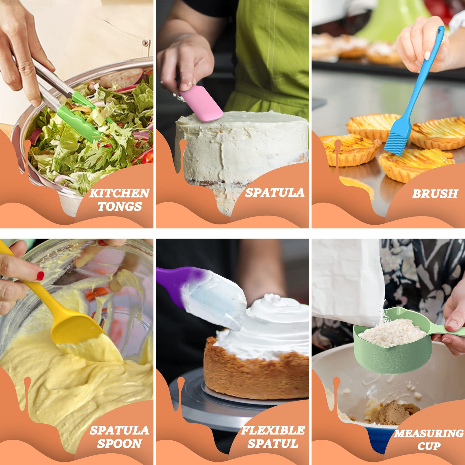 - 6 SIZES BOWLS & EXTRA KITCHEN TOOLS SET: The range of sizes from 7QT down to 1QT. Each bowl comes with a QT label to make it easier to choose the right size, Bowl sizes fit on standard-size refrigerator shelves and cabinets. Comes with a brush, spatula, whisk, measuring spoons